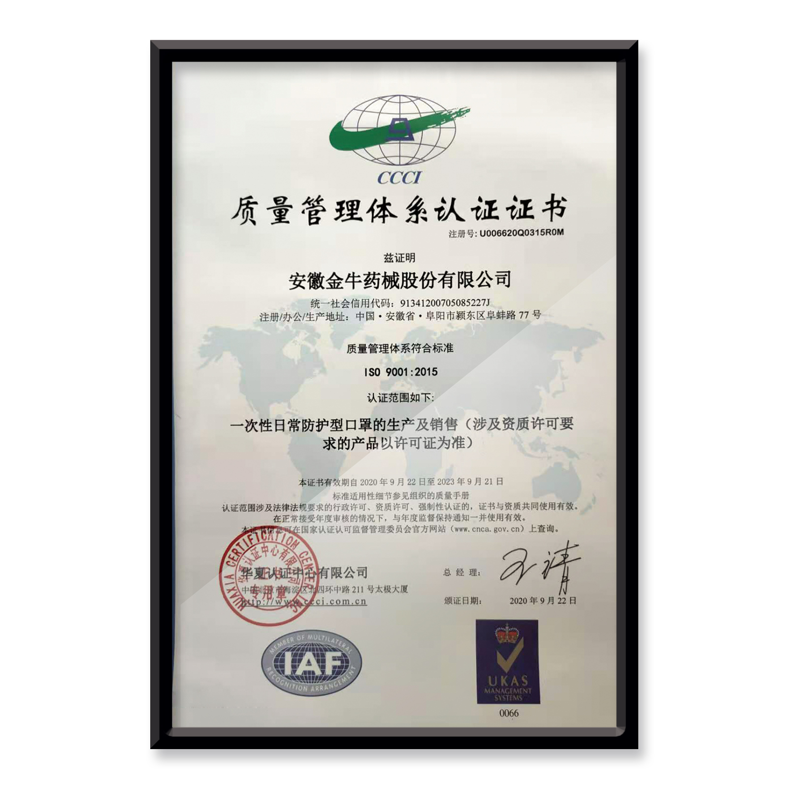 質量管理體系認證證書
